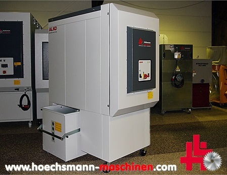 Neumaschine, inkl. automatischer Löscheinrichtung, Absaugung, schallgedämpft 71 dB, Motor 400 Volt - 7,5 kW, Ansaugstutzen Ø = 250 mm, Vorabscheidung zur Filterschonung, 2 fahrbare Abscheidecontainer je 250 ltr. mit Staubschott, automatisch, pneumatisch gesteuerte Filterabreinigung (über SPS), Abmessungen: L= 2.351 mm, B= 1.058 mm, H= 2.361 mm, Gewicht 758 kg, max. Volumenstrom 4.900 m³/h, max. Unterdruck 3.184 Pa, ...