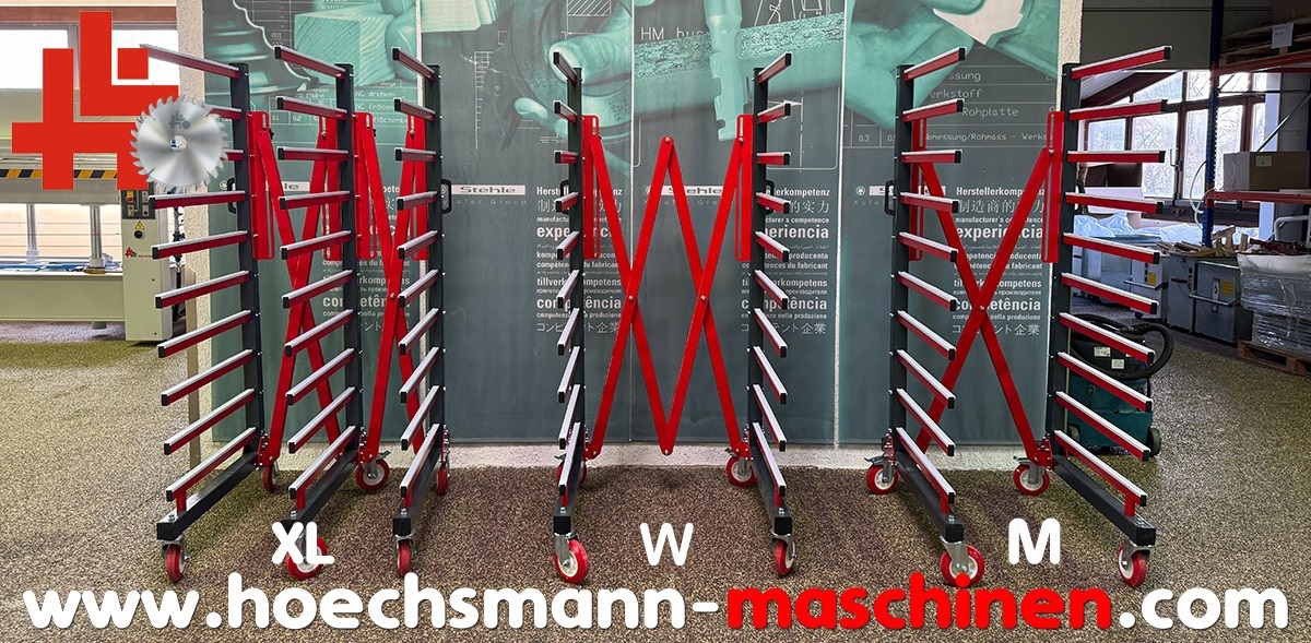 Lacktrockenwagen Tragarmwagen 10 XL, Neugerät, 3x 10 Auflagen mit 780 mm Tiefe, sechs 360° Rollen - davon 3 gebremst, ausziehbar von 660 auf 2.560 mm, vertikaler Abstand zwischen den Auflagen 130 mm