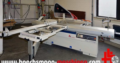 SCM Formatkreissäge, Typ Si 550 EP Class, Neumaschine, CE Zeichen, Besäumlänge 3.200 mm, Schnittbreite (rechts) 1.300 mm, Schnitthöhe 200 mm (bei 45Grad 130 mm), komplett mit 2 Achsen SPS-Digitalsteuerung "READY" und LCD Bildschirm im Steuerpult unter dem Tisch, elektrisch-digitale Höhen- und Schrägverstellung des Sägeblattes (45 Grad), Werkzeugdatenverwaltung mit automatischer Korrektur der Schnitthöhe/Neigungswinkel, manueller/halbautomatischer/automatischer Modus mit 99 individuellen Programmen, Rechner und Betriebsstundenzähler, LED-Anzeige für Positionierung am Parallelanschlag mit Inkrementalverstellung, Hauptmotor 7 kW, Sägeblattdrehzahl 2.500 - 3.500 - 5.000 U/min, Besäumrahmen mit CompeX Vorrichtung für Gehrungsschnitte mit automatischem Ausgleich der Anschlagposition, Exzenterspannvorrichtung, Tischverlängerungen im Auslauf, Sägeblattpaket, Listenpreis über 27.500,- Euro