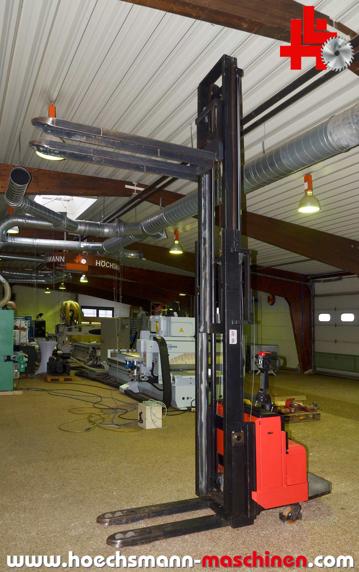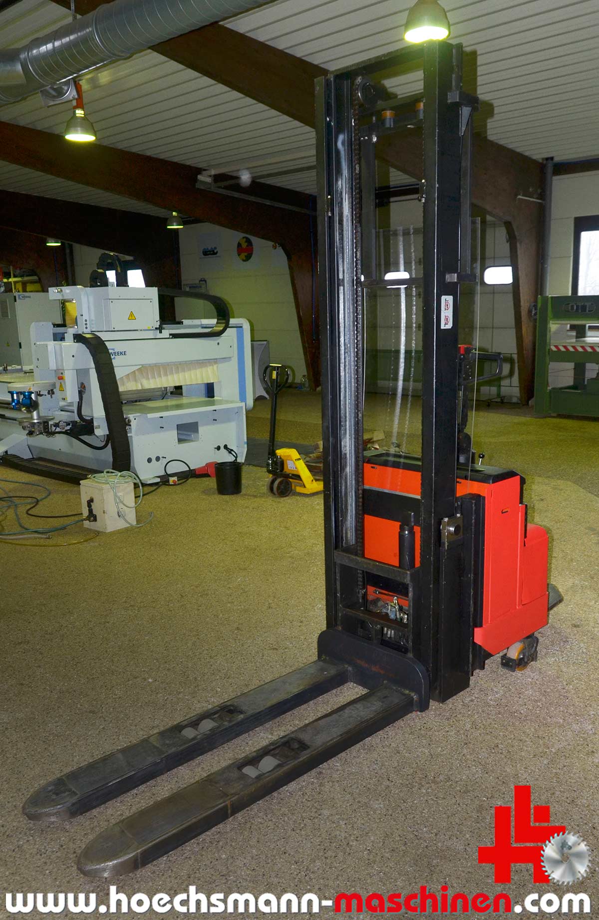 BT elektrischer Hochhubwagen LSF 2000/2, Baujahr 2006, CE Zeichen, Hubkraft 2.000 kg, Gabellänge 1.500 mm, Gabelabstand max. 570 mm, Hubhöhe 3.950 mm, Lastschwerpunkt 600 mm, Gewicht ca. 1.600 kg, Maße LxBxH 2.850 mm x 900 mm x 2.650 mm